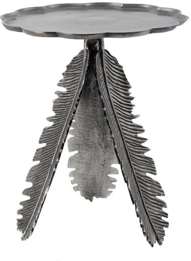 Leaf designs along the legs of this side table define its Natural-inspired aesthetic. Beautifully made with aluminum with a silver antique finish, this accent table has a round top. It looks right at home next to transitional furnishings and decor in the living room.Read More