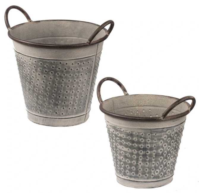 Reminiscent of vintage aluminum tile ceilings, the Antique Grey Metal Planter Buckets offer a unique garden accent that can just as easily enhance your indoor space in place of a basket. The light metal planters have angled handles, making them easy to carry and transport around your garden or in your home.Read More