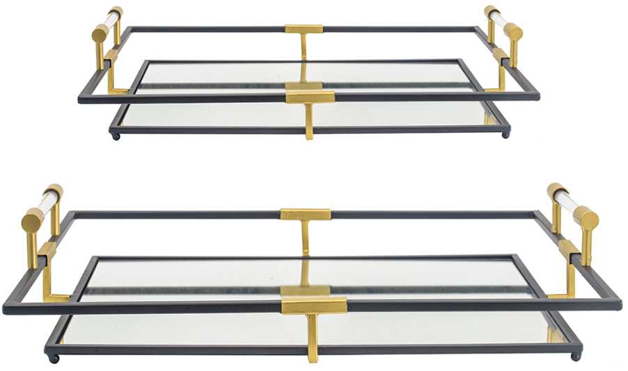 Orchestrate your space with the classic design of the Tribute set of 2 trays. These striking trays with their black and gold finish and mirrored base complement a variety of decor styles.Read More