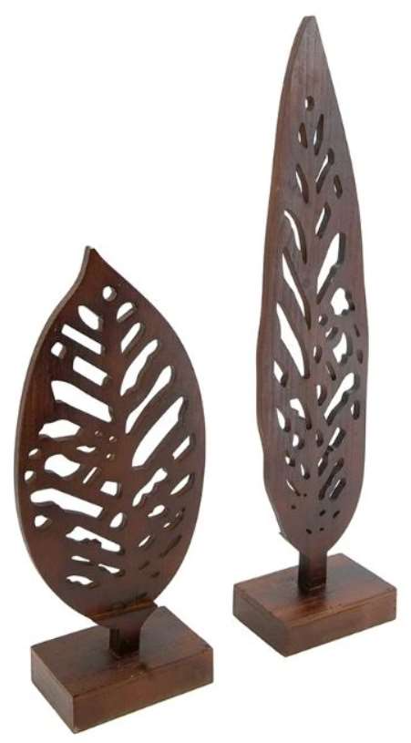 Bring the beauty of nature into your home with the Intrinsic leaf set of two statuary. Crafted to look like the silhouettes of leaves these two iron sculptures are finished with rustic brown further enhancing the natural essence.Read More