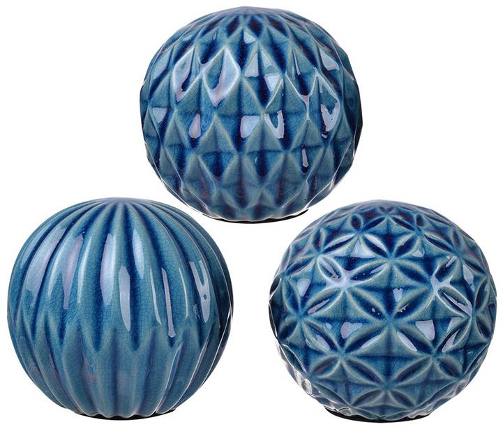 These ceramic ball accents each feature a different pattern. All three are unified by a coordinated blue finish with a gentle gradient effect. Use as standalone accents or get creative and add these lovely pieces to floral displays and other decorative arrangements.Read More