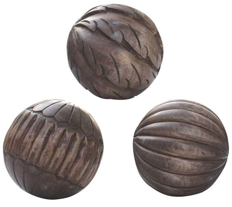 Beautifully carved and elegantly finished, this set of three Brown Carved Mango Wood Spheres adds a warm yet sophisticated look to any room. Fill a decorative bowl with these pieces to add texture and style to a chic office, refined living room, or eclectic entryway.Read More