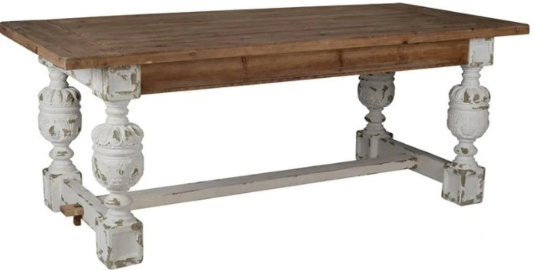 This collection is sure to provide years of dining pleasure with little maintenance required. The farmhouse style lends charm and distinction with beautifully distressed white double pedestal style support and natural wood table top.Read More