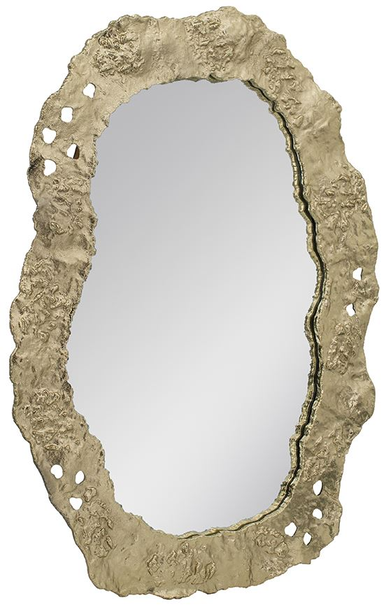 This wall mirror is made with a wavy antique brass finish frame for a cool contemporary flavor. Crafted with an irregular oval frame, this wall mirror uses its abstract style border to catch the eye and engage the viewer.Read More