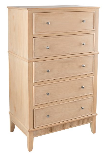 Combining traditional style with a contemporary design, this tall chest will anchor the room. Constructed of wood with a pine veener to lend to the organic nature of the wood. Providing ample storage space for storing your clothes, linens, or spare blankets.Read More
