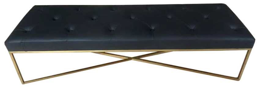 The perfect blend of style and function, this ottoman boasts a sleek black hue and a thin metal frame that overlaps at the base, combining to create an alluring modern accent.Read More