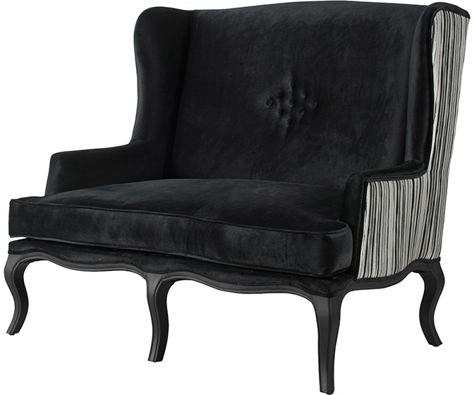 This bold settee offers spacious seating and undersized decorative legs, while the black and gray finishes give it a dynamic presence. The tall backrest and deep seat allow the piece to easily accommodate two sitters. The small, intricate feet supporting the settee provide a stylistic touch and strong balance, keeping the seat comfortably close to the ground.