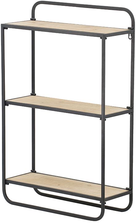 A combination of simple structuring and choice materials make this three-tier wood wall shelf perfectly functional and pleasingly fashionable. The natural wooden shelves offer a dose of rustic appeal, while the smooth metal frame features a black finish and a contemporary vibe. The wall shelf presents an understated design and plenty of storage space for books and display items.