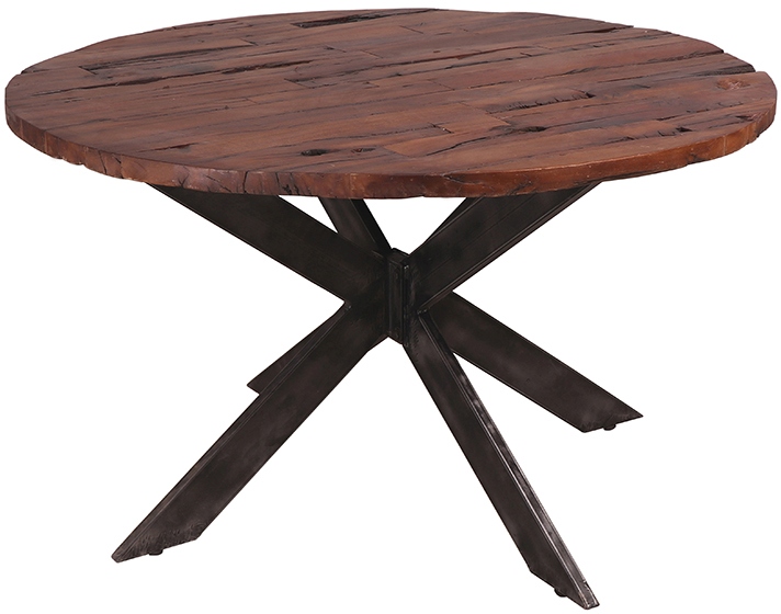 This handsome mid-sleeper wood and iron dining table features a round wood top and modern iron cross leg motif to create a stylish centerpiece table. Made from the finest quality materials, this stripped down and elegant table is a must have addition to dining areas, breakfast nooks, large foyers, and much more. It’s a simple and elegant touch that can’t be beat.