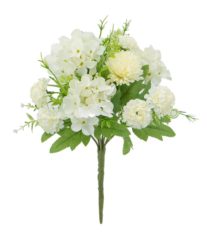 Realistic appearance: Artificial cream faux hydrangea pom pom arrangements are designed to closely mimic the look and texture of real hydrangeas. The flowers have a soft, velvety feel and natural coloring, making them visually appealing.