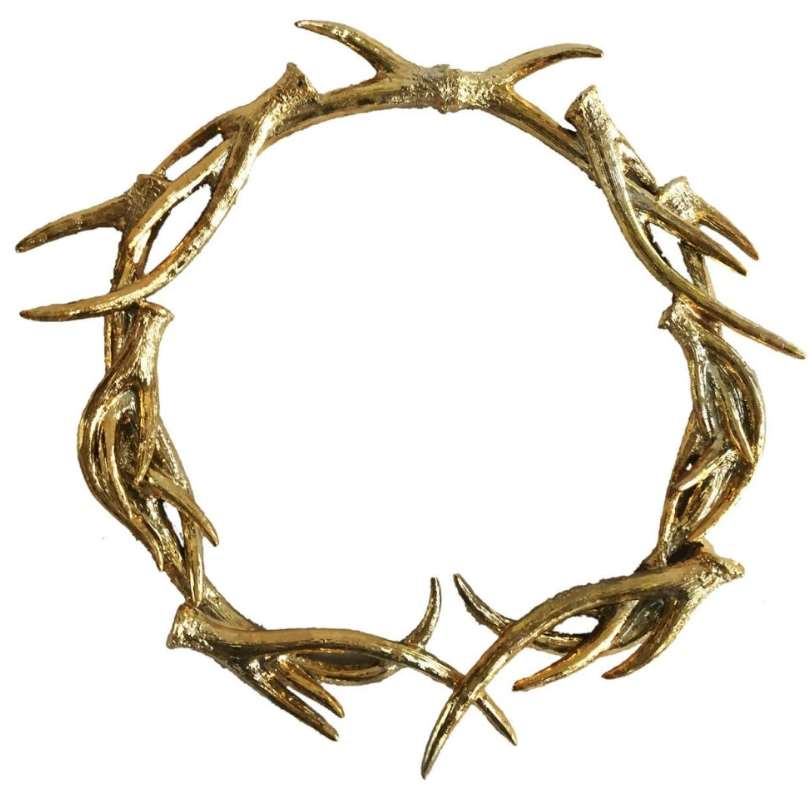 Add a regal touch to your door or accent wall with the gold crown accent. This decorative piece features several antlers nestled together in a wreath-like fashion in a gold finish.Read More