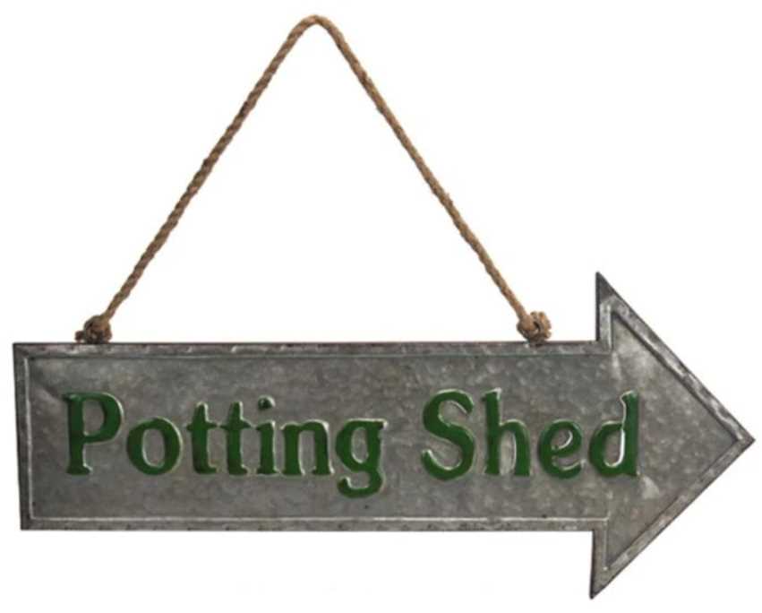 This ‘potting shed’ arrow wall sign is made of iron and hung by rope for an industrial look. It’s farmhouse style will enhance your outdoor patio or backyard decor. ‘Potting Shed’ is featured in a beautiful earthy green color.Read More