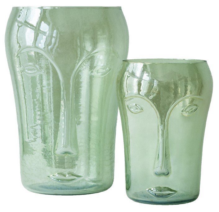Boasting a round, open silhouette, an abstract face motif and a splashed green hue, both vases in this two piece set are handcrafted from 100% high quality glass. Complementing a wide variety of interior styles and decor, each piece will infuse your decor with a curious charm.Read More