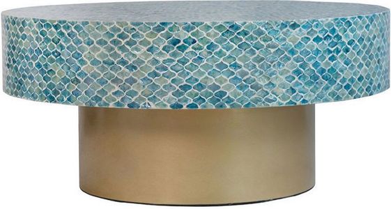 Add drama and functionality to your living room with the Hyperion coffee table. Crafted in blue it features a gorgeous capiz design formed from meticulously inlaid pieces and complemented with a pedestal base. Perfect for a coastal retreat or contemporary bohemian room.Read More