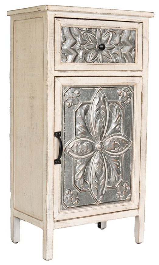 Add a touch of vintage charm to your space with this accent chest. The Katina's chest features a whitewashed finish with an embossed galvanized door and drawer making it a great piece for any farmhouse or shabby chic decor.Read More