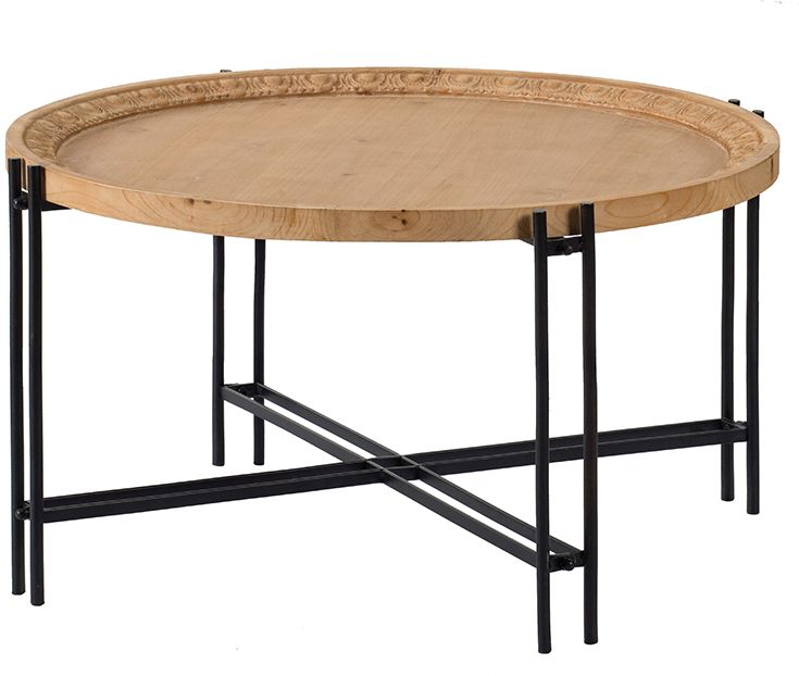 Using pin legs and a large round surface, this coffee table achieves excellent fashion and function with its modern design. A natural wooden tabletop provides a broad, sturdy surface while a series of metal legs connect and intersect below. The contrasting materials work beautifully together while giving this table an exceptionally attractive and contemporary look.