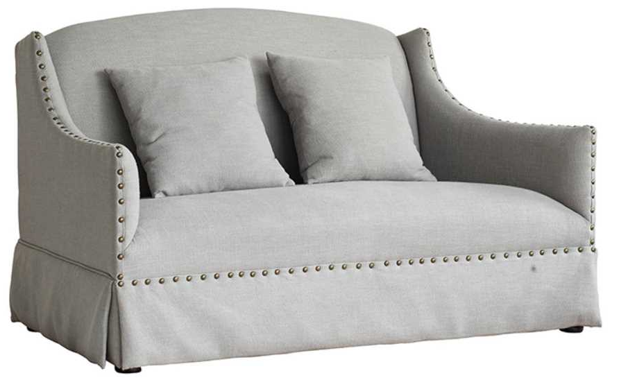 Welcome guests with a cozy spot on the Pampa Settee. The piece features winged-arm styling covered in versatile, soft gray upholstery trimmed with large nailheads. A coordinating accent pillow is also included.Read More