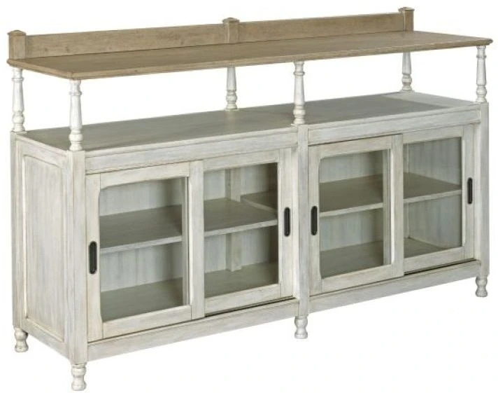 The American Drew® Litchfield Dorset Driftwood Credenza that has storage inside the sliding door with seeded glass, adjustable wood shelf and cord exits. Perfect complement to any dining area or storage piece for any room.Read More