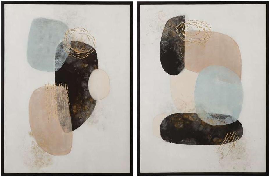The Anthea framed canvas set of 2 is the perfect addition to any modern interior with organic shapes in various colors and sizes for visual interest. Each canvas is in a sleek black frame.Read More