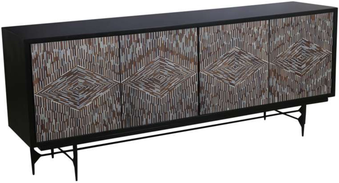 The Andreas Server features a stunning contemporary design, blending striking materials and a visually captivating diamond patterned door design. Crafted from solid mango wood in an ebonized finish, the case frame exudes elegance and depth. The doors are a standout element, showcasing a unique mix of multi colored bone and resin, creating an intricate, eye-catching pattern.Read More