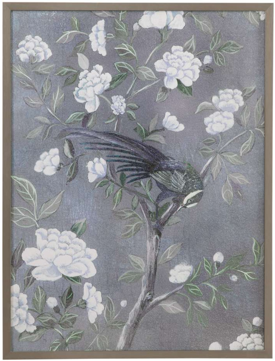 Birds and Bloom II is a print framed in a 1" pewter shadow box molding and features a special textured finish giving the effect of an original canvas artwork.Read More