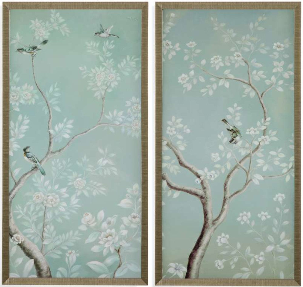 Birds and Flowers is a two piece set that features a matte paper print with a 1" brushed silver with gold undertones molding. D-ring or sawtooth picture hanging hardware included. Material: Wood, Clear Glass. Made in the USA.Read More