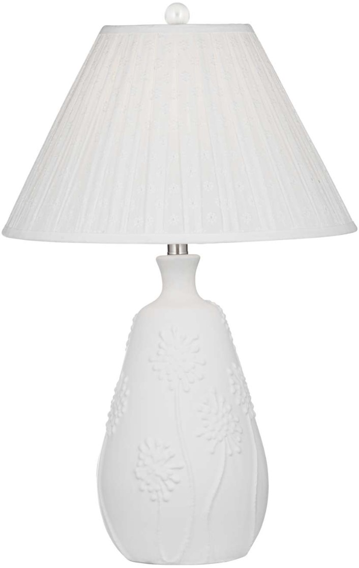 The Brentwood Table Lamp blends traditional charm with delicate detailing. Its matte white base features a raised floral motif that adds texture and elegance, while the unique fabric shade offers a soft, graceful finish. A timeless piece with a refined, precious feel.Read More