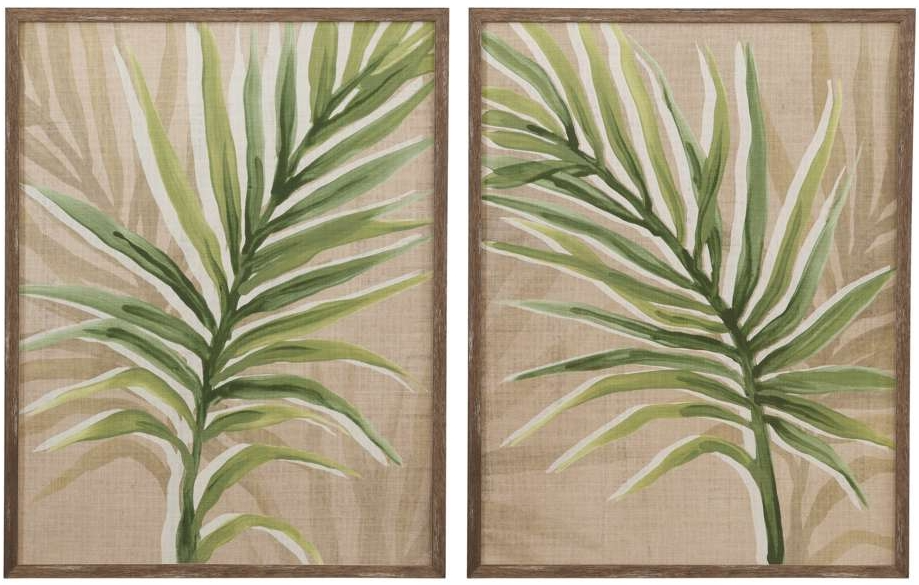 Burlap Palm Frond is a set of two prints framed in a 1" rustic brown barnwood frame. Burlap background and Green palm print. Made in the USA.Read More