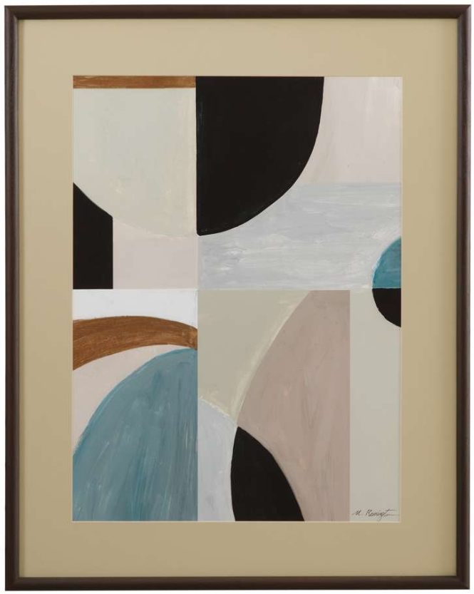 Curved Vision Shapes is a print signed by the artist and framed in a 1" wood tone frame with a celery matboard. Abstract print in modern design. Made in the USA.Read More