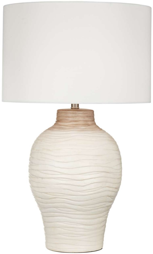 The Gala Table Lamp blends modern design with boho-inspired texture, featuring a cream and brown base with organic wavy detailing. A soft white drum shade completes the look, casting a warm, relaxed glow ideal for layered, collected spaces.Read More