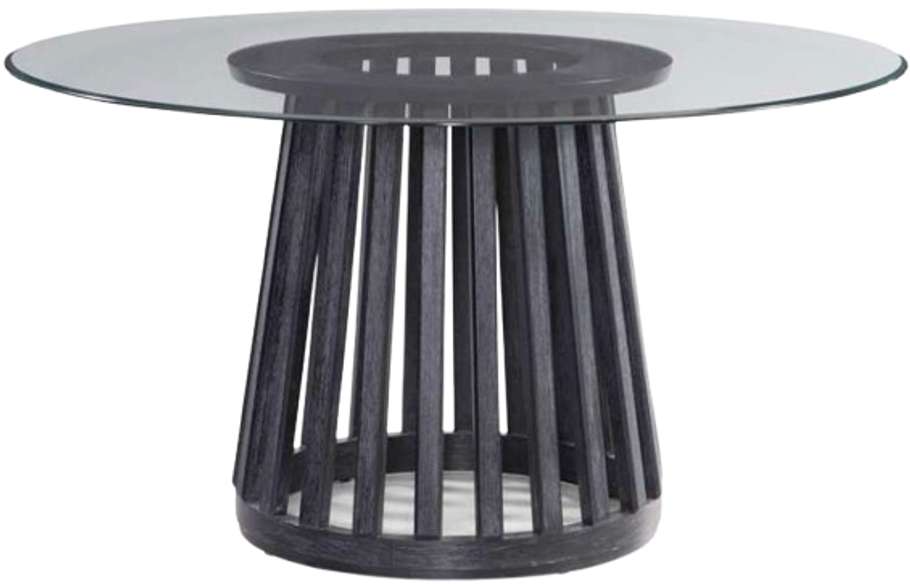The Mateo Round Dining Table features a round tapered slat base design for a contemporary style. Features a 54" round clear glass table top. The wood table base is finished in a cerused black oak veneer. Additional features include adjustable floor levelers. Comfortably seats 4 people.Read More