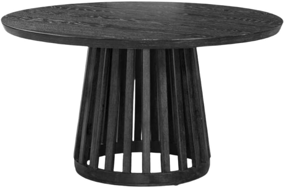The Mateo round dining table features a round tapered slat base design for a contemporary style. Finished in a ceruse black oak veneer. Additional features include adjustable floor levelers. Comfortably seats 4 people.Read More