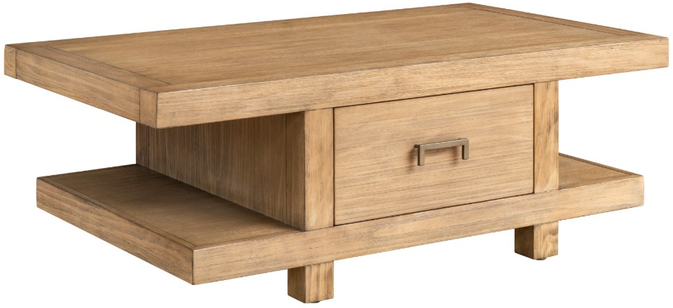 A single drawer with custom antiqued pewter hardware offers discreet storage, while the open shelf keeps essentials within easy reach. The Riggs Coffee Table delivers timeless style with everyday functionality.