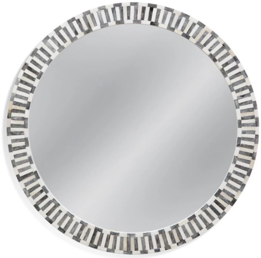 Sceptre Wall Mirror is round framed in a grey and white bone frame. With its unique design that adds a touch of glamour to any décor style, this wall mirror is sure to make a statement in any room.Read More