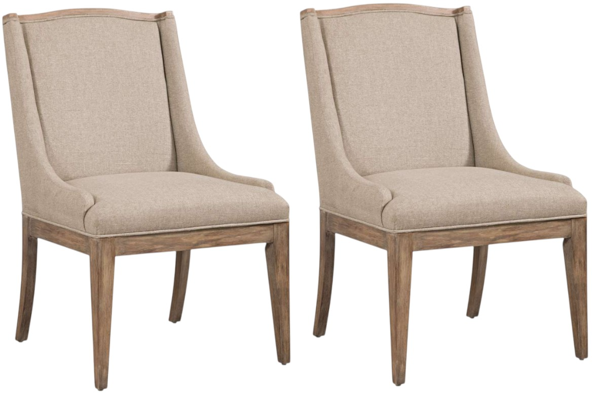 The Buxton parsons chair features wrap around arm styling in an oatmeal color textured fabric with wooden legs and accents in a weathered natural finish.Read More