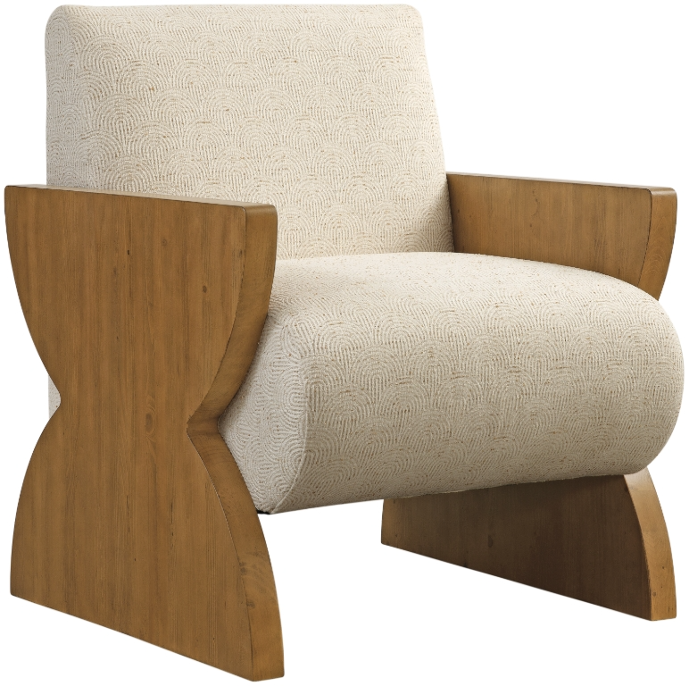 The Times Up accent chair offers a striking modern design with a unique hourglass-shaped side panel construction. The floating style seat is upholstered in an ivory waved print fabric, creating a soft, textured look that complements the sleek, contemporary design.Read More