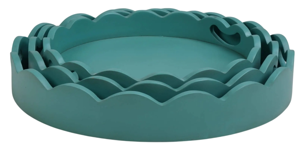 The Chloe 3-piece tray set is a handcrafted collection that blends boho chic charm with functional elegance. Made from wood, each tray features scalloped edging and a round silhouette, perfect for serving drinks, displaying décor, or organizing essentials with flair.Read More