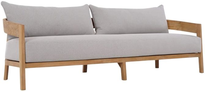 Modern outdoor sofa built from solid teak wood with exceptionally wide dimension. The teak wood is kiln-dried to avoid mold, mildew, and cracking, making it the perfect material for outdoor use, requiring minimal maintenance. The hard-wearing cover fabric is removable and washable.Read More