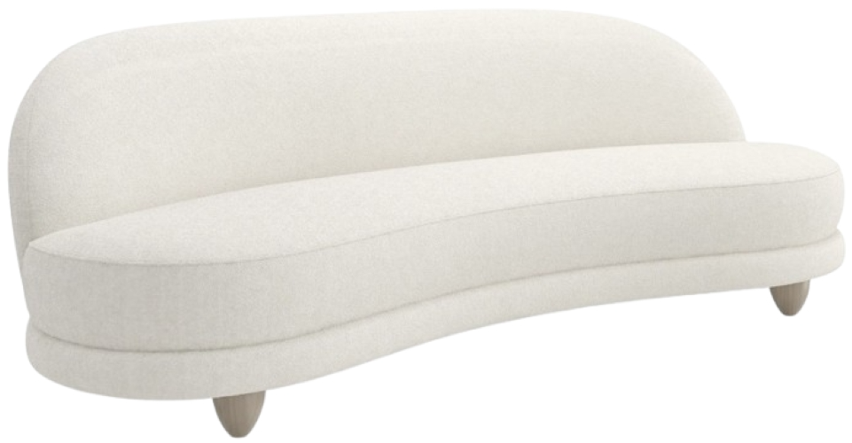 With a sleek, serpentine shape, this modern sofa introduces a fluid, biomorphic form to living interiors. Dressed in a tactile, two-tone boucle, its curvaceous silhouette invites conversation and luxe comfort. Softly rounded wood feet in a sand-colored finish add to its organic yet elegant style aesthetic. 90-inch Tulum sofa also available.Read More