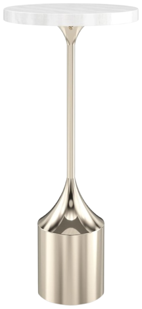 A nod to the streamlined style of a mid century candlestick, this spot table is well-scaled for reading nooks and larger spaces designed for entertaining. Its white stone top lends soft contrast to a sculptural metal frame with a sturdy base in a whisper of gold.Read More