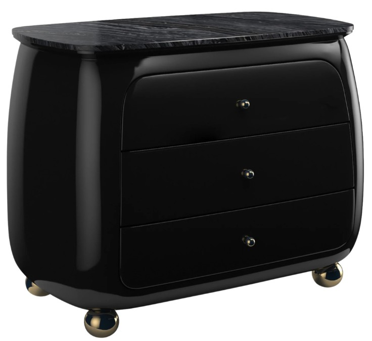 Just like the gemstone of the same name, this nightstand has been shaped and polished to perfection. It has a rounded, ultra-shiny Piano Black frame with a flat top of highly figured black and grey stone. Three soft-close drawers are curved to follow the lines of the piece.Read More