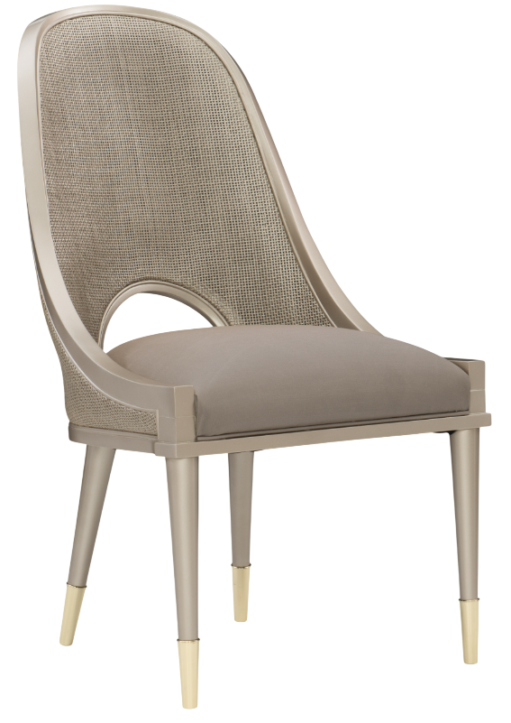 For traditional style with an updated appeal, look no further. This iconic chair offers a casual interpretation of classic british west indies-style caning. Its modernized shape features an open back cut-out and is accentuated by woven cane on its back and frame highlighted with a neutral metallic finish.Read More