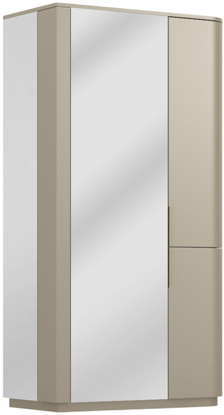 This distinguished piece offers so many versatile features that it can function as a full valet, a bar, or even a stowaway media cabinet. Large panels of mixed materials and finishes create a subtle color-blocking effect. The wood cabinet is an elegant combination of strong right angles offset by generously filleted edges.Read More