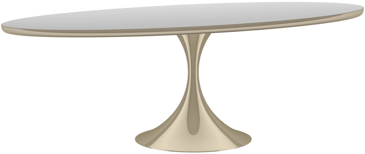 Our reinterpretation of the mid-century modern tulip table makes an eye-catching statement in a dining room or professional office. Originally designed to remove the clutter of legs under a dining table, this piece boasts a curved, stem-like metal base in Whisper of Gold.Read More
