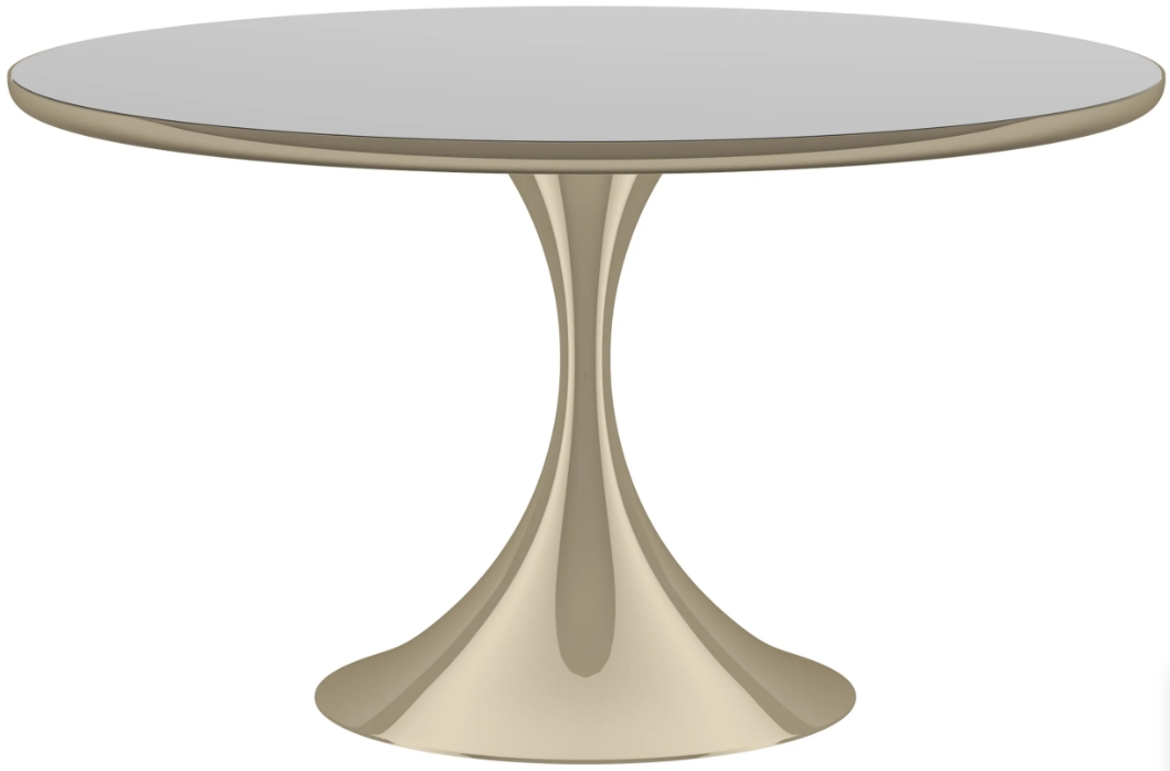Our reinterpretation of a mid-century modern tulip table makes a striking statement in a dining room, kitchen, or sunroom window. Originally designed to remove the clutter of legs under a dining table, this piece boasts a curved, stem-like metal base in Whisper of Gold.Read More