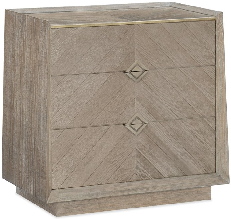 A stunning bedside companion, the Crossed Purposes nightstand clearly has the WOW factor. A simple, slightly tapered silhouette accentuates the inherent beauty of its natural materials. Perfectly matched directional woodgrain veneers create a one-of-a-kind chevron pattern that attracts the eye without competing with other pieces in the room.Read More
