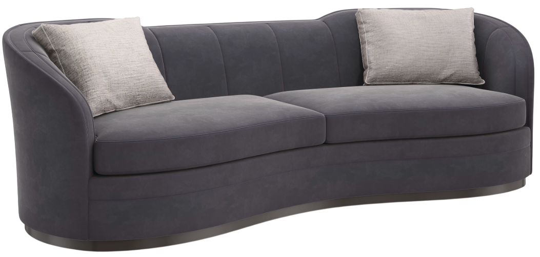 A dark chocolate plinth base accentuates this sofa’s art deco-inspired lozenge shape, masterfully upholstered in a plush charcoal heathered velvet. Designed with two seat cushions that follow its serpentine front and snuggly sit against its softly curving channeled back.Read More