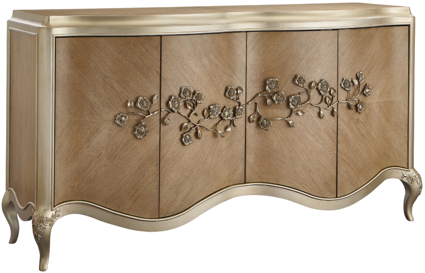 Flawlessly designed, this exquisite buffet channels the bold beauty and classic motifs of the Rococo period and interprets them for modern living. Its unique personality is brought to life with a sculptural flower and vine metal casting displayed across its shaped front.Read More
