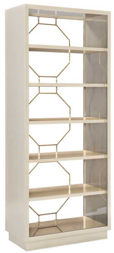 Back-painted glass in a Taupe Metallic distinguishes the interior of this five-shelf display piece. Drawing inspiration from classic Chippendale style, this étagère can be used on its own for storage and display or bunched together to make a bold design statement.