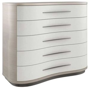 Free-flowing in nature, this sinuously shaped dresser makes a simple, yet elegant, organic statement. Vinyl-wrapped drawer fronts accentuate its gentle curvature and offer subtle contrast to Koto veneers in a pearlescent Moonstone finish. Five soft-close drawers offer tucked-away storage, with horizontal hardware and painted interiors for an unexpected finishing touch.Read More
